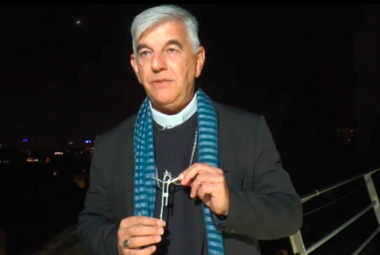 El jesuïta Enrique Figaredo porta la creu de Cambodja a la Sagrada Família